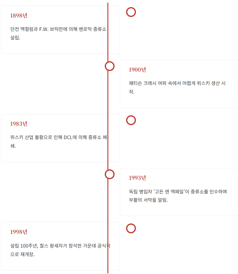 벤로막의 역사는 한 편의 드라마와 같습니다. 19세기 말 위스키 붐 속에서 탄생했지만, 수많은 부침을 겪으며 폐쇄의 아픔을 겪었고, 위스키에 대한 열정을 가진 한 가문에 의해 기적적으로 부활했습니다.