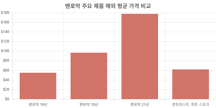 • 벤로막 15년: 국내에서는 10만원 후반대에서 20만원 초반대, 해외에서는 약 $90~100 선입니다.
