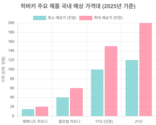 단종 사태와 희소성은 히비키의 가격을 천정부지로 밀어 올렸습니다. 불과 몇 년 전만 해도 10만 원대였던 재패니즈 하모니는 현재 20만 원에 육박하며, 단종된 17년은 100만 원을 훌쩍 넘는 가격에 거래됩니다. 이로 인해 주류 판매점에 소량 입고되는 날이면 매장 문이 열리기도 전에 줄을 서는 '오픈런' 현상까지 벌어지고 있습니다. 현재 한국 시장에서의 대략적인 가격대는 아래 표와 같지만, 시점과 판매처에 따라 변동이 크다는 점을 유의해야 합니다.