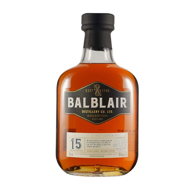 발블레어 15년 아메리칸 오크 엑스-버번 캐스크에서 숙성 후, 퍼스트 필 스페니쉬 오크 버트에서 추가 숙성 46% Aroma: 부드러운 가죽, 꿀, 구운 배의 향과 함께 다크 초콜릿의 힌트.