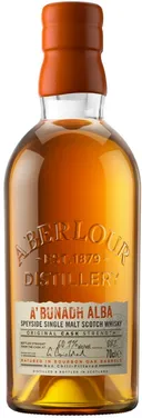 '알바(Alba)'는 라틴어로 '흰색'을, 게일어로는 '스코틀랜드'를 의미합니다. 이름처럼 아메리칸 화이트 오크(Quercus Alba) 품종의 퍼스트필 버번 캐스크에서만 숙성한 제품으로, 셰리 폭탄인 오리지널 아부나흐와는 정반대의 매력을 보여줍니다.