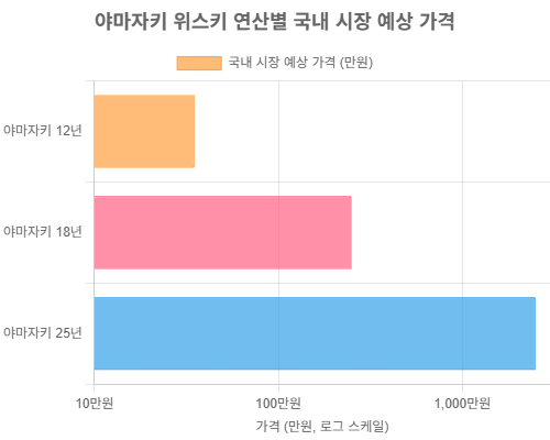- 야마자키 25년: 일반적인 거래가 드물며, 부르는 게 값입니다. 수천만 원을 호가하는 것으로 알려져 있습니다.