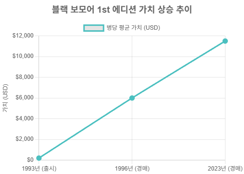 결정적인 사건은 1996년 런던 크리스티(Christie's) 경매에서 일어났습니다. 1993년, 1994년, 1995년에 출시된 블랙 보모어 초기 3부작(Trilogy) 세트가 당시로서는 상상하기 힘든 가격인 18,000달러에 낙찰된 것입니다. . 불과 3년 만에 출시가의 30배에 달하는 가치로 폭등한 이 사건은 전 세계에 엄청난 충격을 주었습니다.