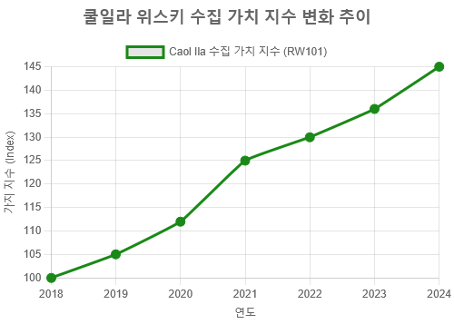쿨일라는 다른 아일라 증류소에 비해 상대적으로 저평가되어 왔지만, 최근 그 가치가 재조명받으며 수집가와 투자자들의 관심이 높아지고 있습니다. 위스키 시장 분석 사이트 Rare Whisky 101에 따르면, 쿨일라의 수집 가치는 꾸준히 상승하는 추세를 보이고 있습니다.