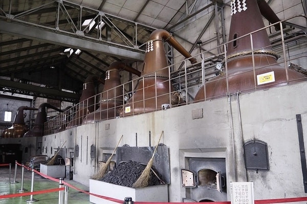 요이치 증류소의 상징인 석탄 직화 방식 구리 증류기들