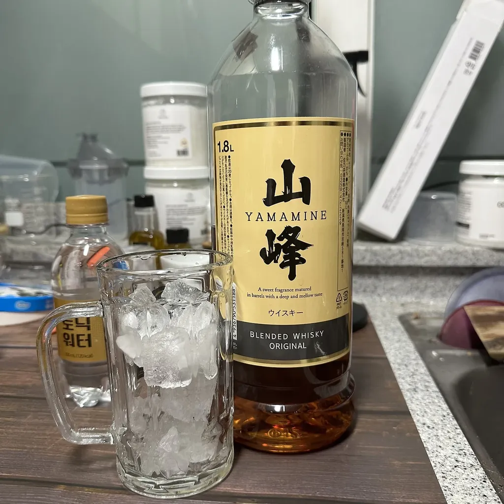 롯데마트에서 배급하는 하이볼 60잔 분량의 1.8L 대용량 위스키 야마미네 블렌디드 위스키입니다. 일본의 스미노이주조(住乃井酒造)에서 만든 대용량 블렌디드 (주정강화) 위스키입니다.